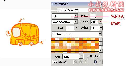 Fireworks 的优化面板是关键,比较简单的
