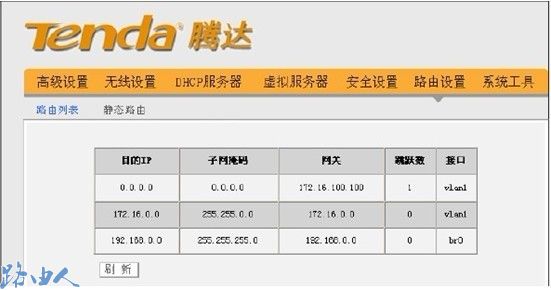 图片 腾达无线路由器的静态路由和路由列表_