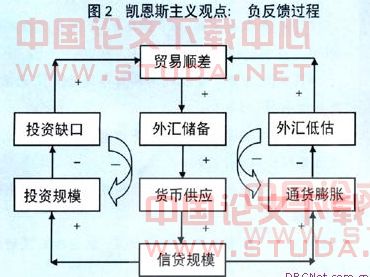 其中,从相对于国内储蓄能力不足的国内投资需求出发,存在缩小国内储蓄剩余的负反馈调整过程:“投资需求不足→国内吸收能力不足(低于国内供给能力)→净出口增加(吸收国内供给能力)→国际贸易顺差增加→外汇储备增加→货币供应(以及信贷规模)增加→投资规模增加→投资需求增加”。从相对于国际收支基本平衡目标低估的人民币汇率出发,存在促使人民币实际汇率升值的负反馈调整过程:“汇率低估 净出口增加(吸收国内供给能力)→ 国际贸易顺差增加 外汇储备增加 货币供应(以及信贷规模)增加 投资规模增加 有效需求增加 通货膨胀率上升 (实际)汇率升值”。