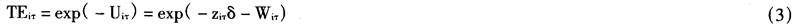 假设技术非效率Uit是一些解释变量Ziτ和待估参数δ的函数,技术非效率Uiτ的函数为: