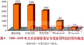 首先是对拥有的知识产权的保护。随着油田技术服务公司每一项新技术的出炉,新技术的专利申请也提上了日程,因此,这些公司在海外设立研发机构时首先要考虑的一个重要因素就是东道国的知识产权保护状况。截至2005年底,Weatherford公司除了在美国本土的专利数量达到821项,正在申请的专利数量达到515项外,还同时在世界各子公司所在国拥有1209项专利,并立案申请1500项,专利保护期一般为3~20年。Weatherford 公司2005年的财务报告显示,该公司专利资产净值约为8400万美元,2004年为8100万美元。