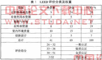 LEED是美国绿色建筑委员会所组织的,对美国现有建筑进行生态评估的一套评价体系。作为一项系统地评估绿色设计和可持续胜建筑的评价认证体系,LEED已在世界范围内受到广泛认可,并日趋成熟。我国人口众多,平均资源占有量少,能源消耗量大。而仅建筑能源消耗量就占据我国能源消耗总量的1/5。由此看来,在我国推行绿色建筑,走可持续发展的建设之路势在必行。