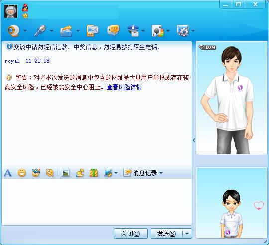 在上图中,画圈的问号图标,就是当前网址安全等级图标,具体说来,这就是保护大家访问聊天窗口网址安全的保护策略。