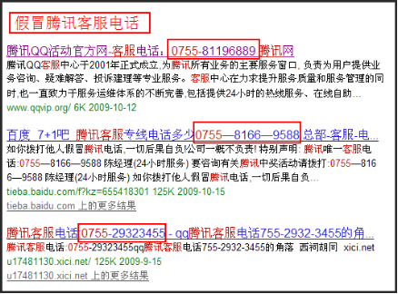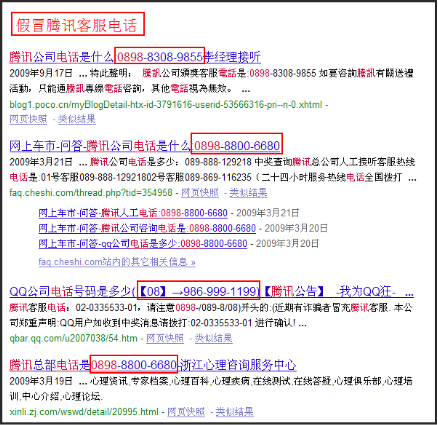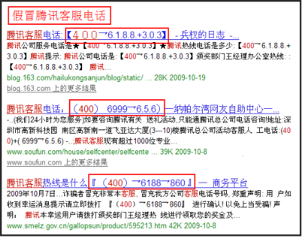 使用网络搜索“腾讯客服电话”、“QQ客服电话”会出现(区号0898或020等)的假冒客服电话,请广大网民提高网络安全意识,注意识别假冒腾讯客服电话。
