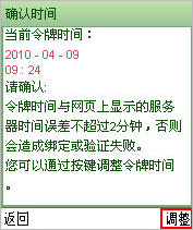 如果您手机令牌的时间与服务器的时间相差2分钟以上,建议您调整时间。如图: